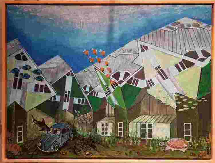 De afvalcontainer is zijn startpunt voor nieuw werk. Rob Scheuierman schildert, deze keer, de wereld volledig onder water, zoals De Rotterdamse Kuip en de Kubuswoningen.