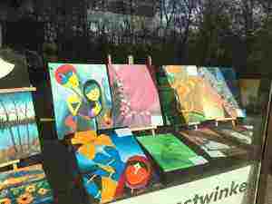 De kunstwerken blijven de hele maand mei in de etalages. Neem gerust een kijkje, het kost u niets!