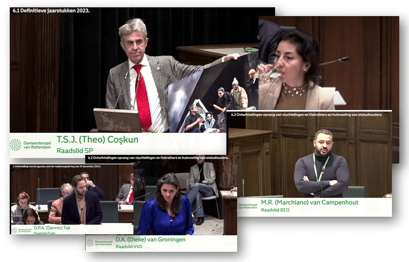 Bij het debat over de definitieve jaarstukken 2023 heeft de gemeenteraad: Ook is hierbij de volgende motie aangenomen: De gemeenteraad heeft bij het debat over de ontwikkelingen opvang van vluchtelingen en Oekraïners en huisvesting van statushouders de volgende moties aangenomen: