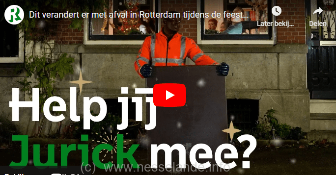 De gemeente heeft een video gemaakt over afvalman Jurick, die tijdens de feestdagen moet werken, en hoe de Rotterdammers hem kunnen helpen.